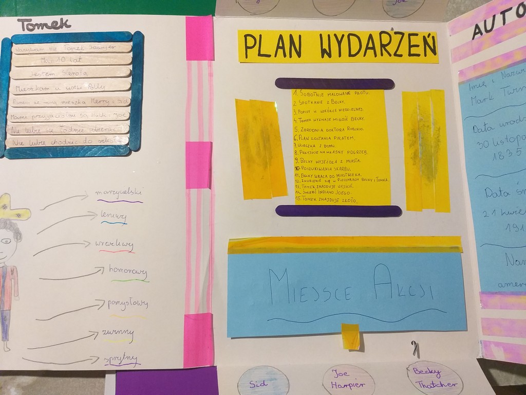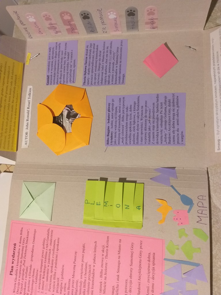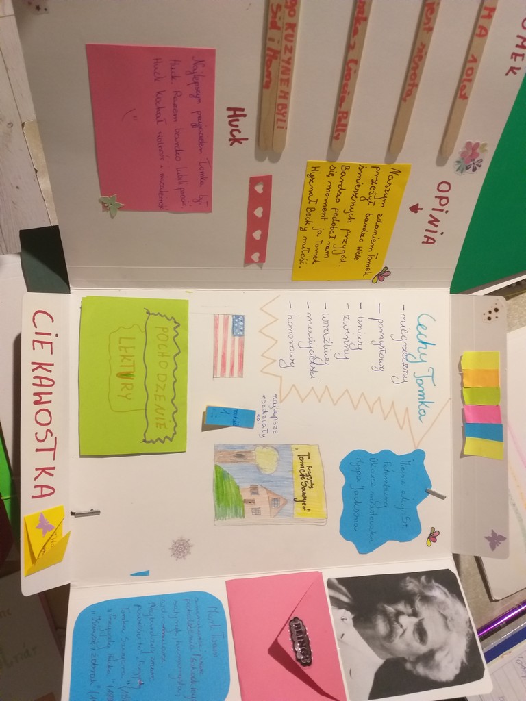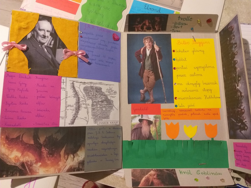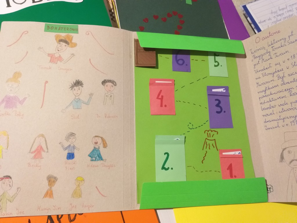 Uczniowie klasy 6A i 5A rzetelnie wykonali prace na temat lektur: ,,Hobbit, czyli tam i z powrotem” oraz ,,Przygody Tomka Sawyera”. „Lapbooki z całego serca polecamy, bo kształtują wiele cennych umiejętności, a ich kolorowa i zróżnicowana forma jest bardzo atrakcyjna.