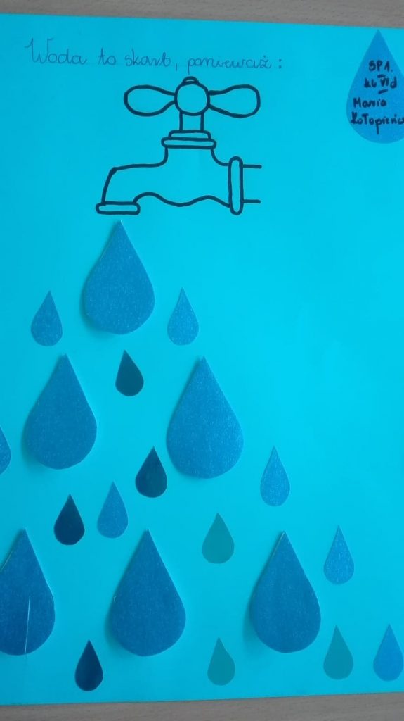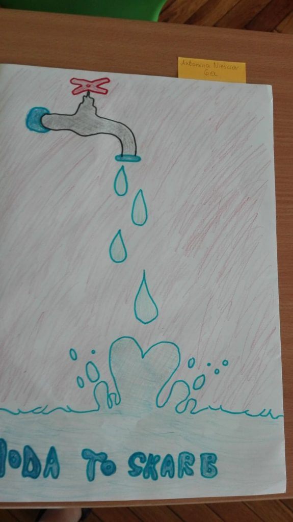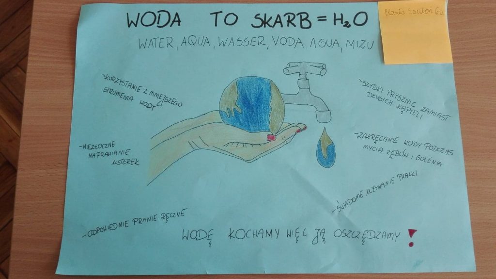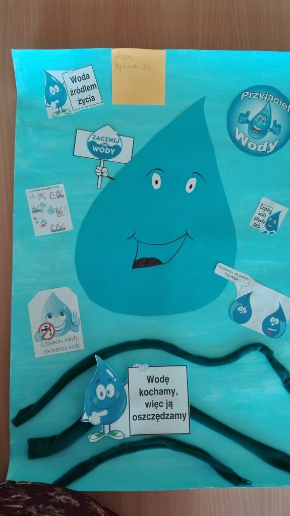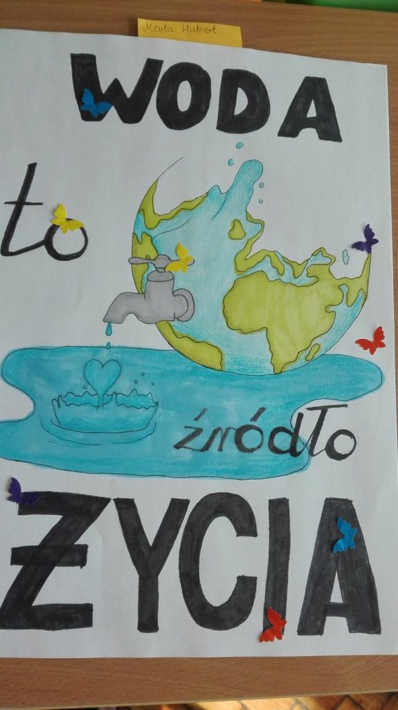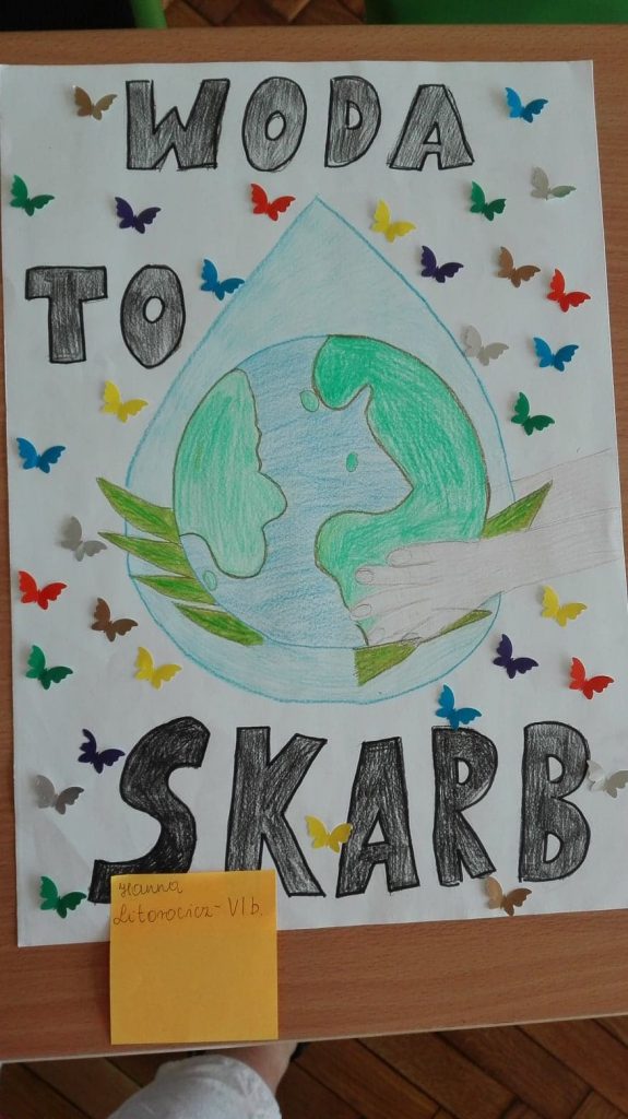 We wrześniu w naszej szkole z okazji Światowego Dnia Monitoringu Wody odbył się konkurs ,,WODA TO SKARB”. Najciekawsze prace wzięły udział w konkursie międzyszkolnym. Cel konkursu to podniesienie świadomości ekologicznej uczniów w zakresie: znaczenia wody dla życia na Ziemi, wdrażania do oszczędzania wody, kształtowania postaw i przyzwyczajeń proekologicznych, budzenia świadomości osobistego wpływu na zmiany w środowisku.