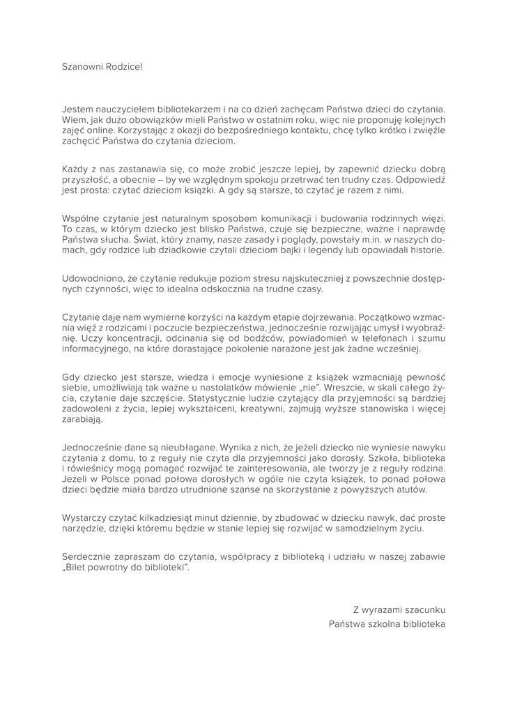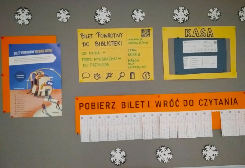 Biblioteka szkolna zaprasza wszystkich uczniów kl. I – III, ale również tych starszych, do udziału w akcji czytelniczej „Bilet powrotny do biblioteki”.