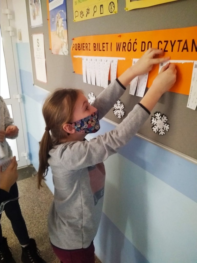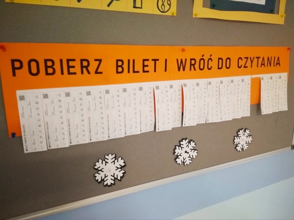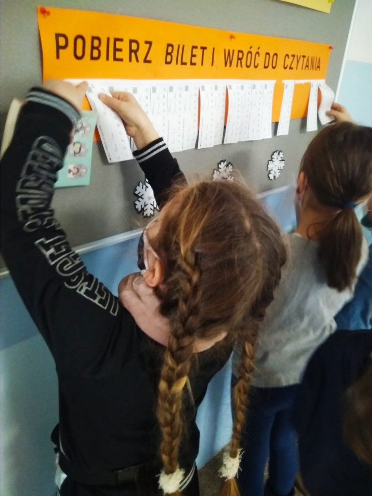 Podczas każdej wizyty w bibliotece uczeń może poprosić o książkę z danej kategorii. Po przeczytaniu książki jego bilet zostanie skasowany.